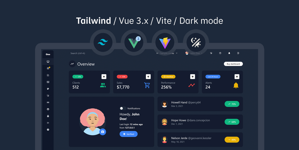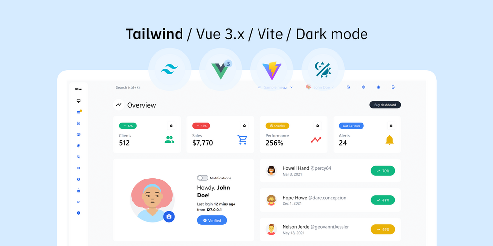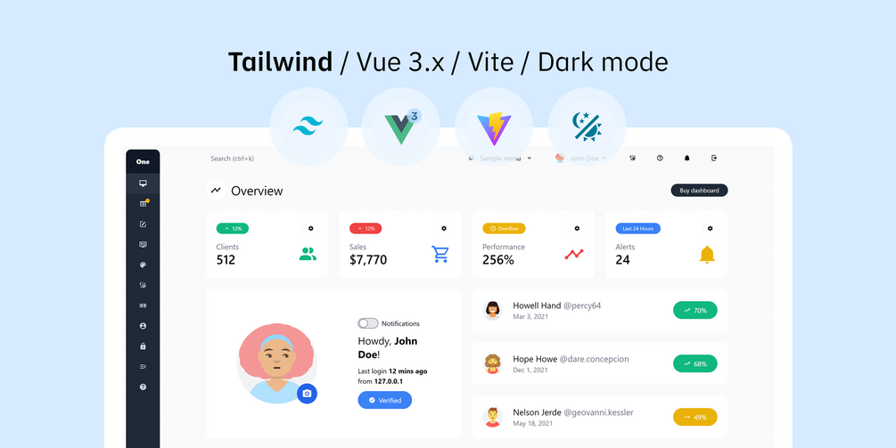 Admin One Vue.js 3.x Tailwind 3.x Premium template